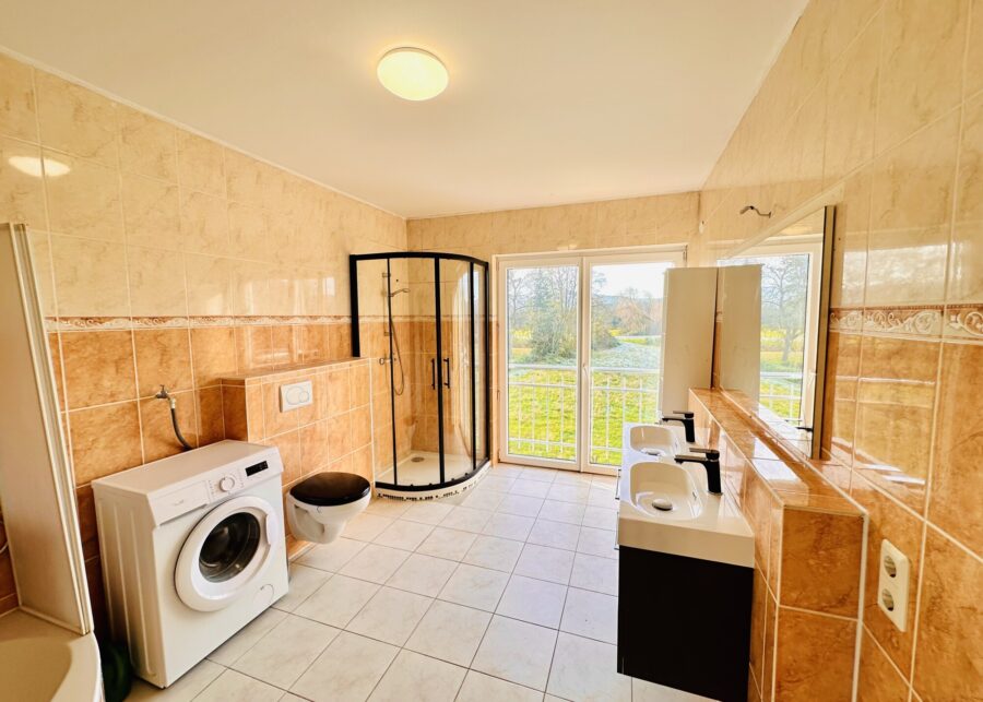 Auch die Bade·zimmer gehören dazu.