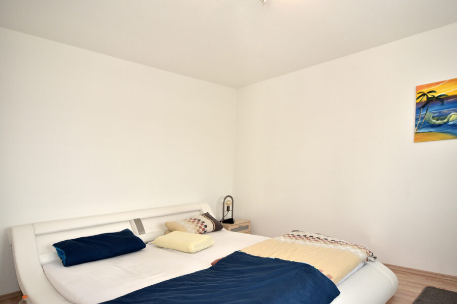 Im Ober·geschoss gibt es 2 Zimmer zum Schlafen.