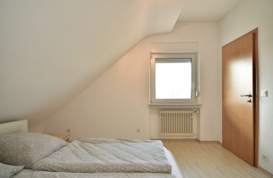 Im Dach·geschoss gibt es auch 2 Zimmer.