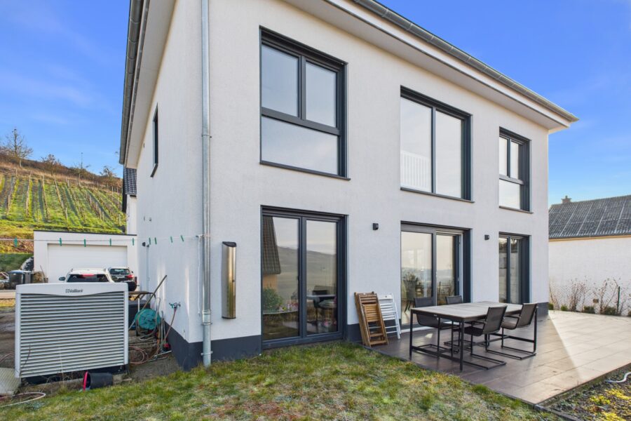 Und wer sein Haus und das gesamte Mosel-Panorama mit einem Weitwinkelblick genießen möchte, dem empfehlen wir, hin zur „Kirch“ (der St.-Martin-Kapelle) zu gehen. Schon auf Google können Sie erahnen, wie fantastisch der Blick von dort ist. Das Haus „Unter der Kirch 1“ lässt sich von diesem Aussichtspunkt tatsächlich mit ganz anderen Augen betrachten.