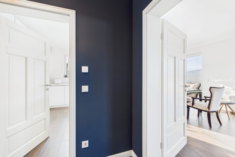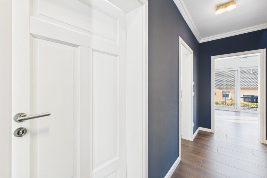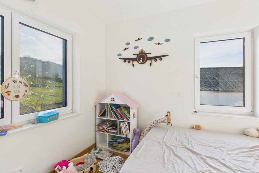 Wir haben hier ein zu 100 % fertiges Haus, das im Grunde nicht nur von Gästen (den einmal im Jahr darin wohnenden Eltern) bewohnt werden sollte, sondern nach Leben verlangt. Und Sie, all diejenigen, die sich angesprochen fühlen, haben Glück: Nicht nur, dass im Erdgeschoss ein Gästezimmer (oder Büro) mit Gästetoilette und Dusche vorhanden ist. Im Obergeschoss sind vier Schlafräume (oder drei und ein Büro – je nach Bedarf). Somit lässt sich auch eine vier- oder fünfköpfige Familie, ein Homeoffice oder ein Nanny-Room ohne An- oder Umbau integrieren.
