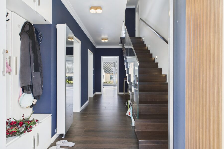 Die großen Fenster im Erdgeschoss und Obergeschoss auch.