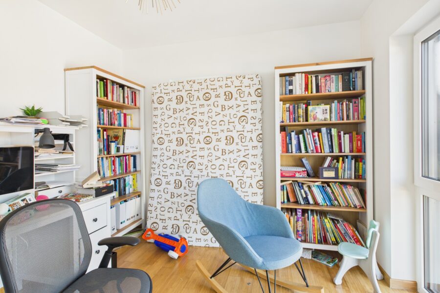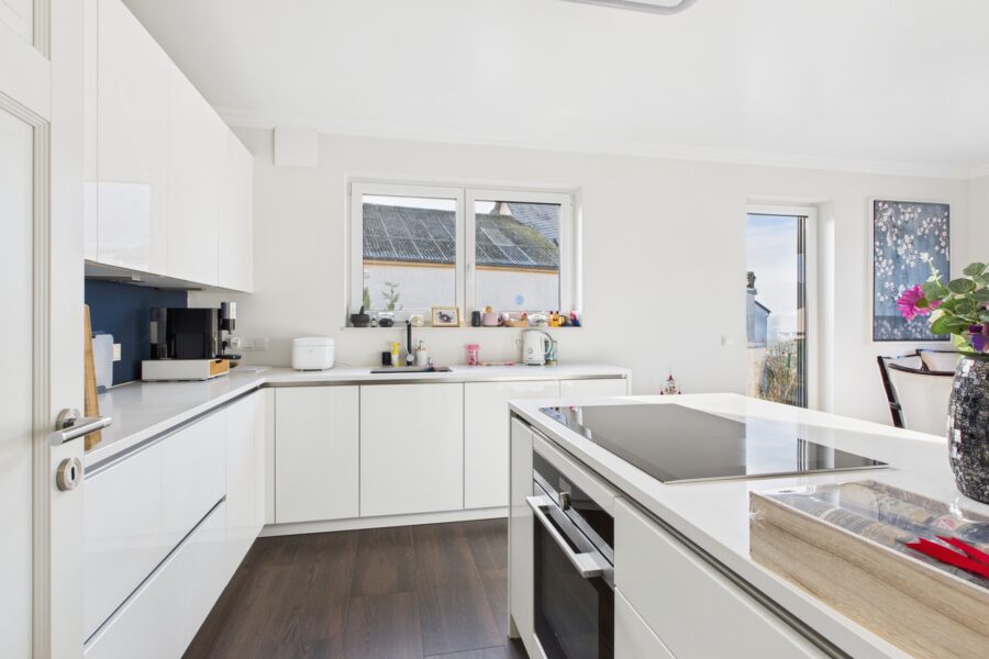Die Küche, das Esszimmer und das Wohnzimmer sind nach Westen.