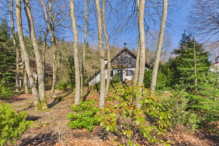 Um das Haus stehen viele Bäume.