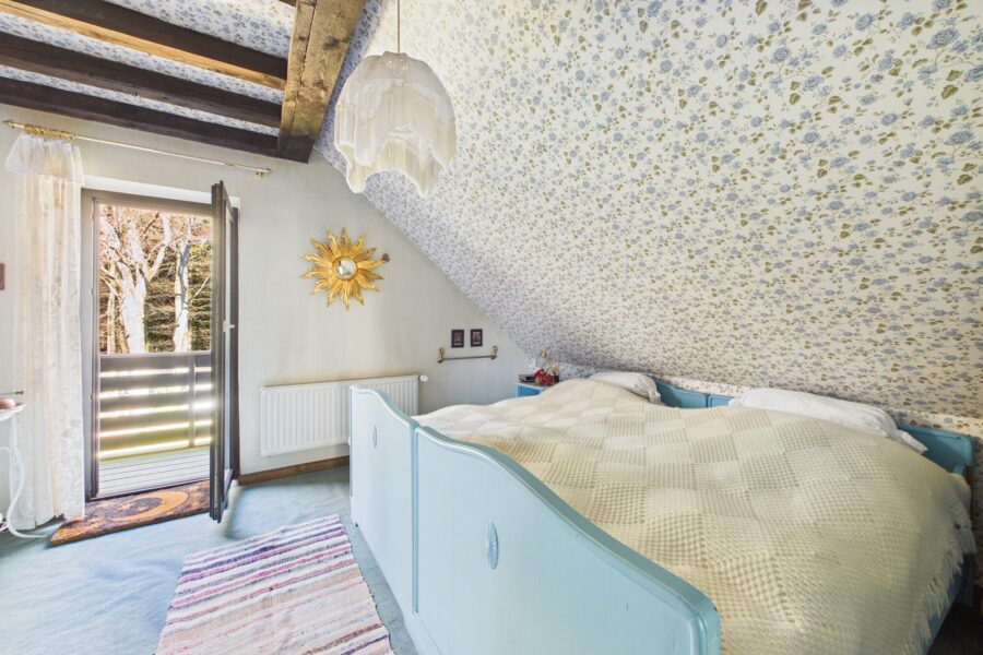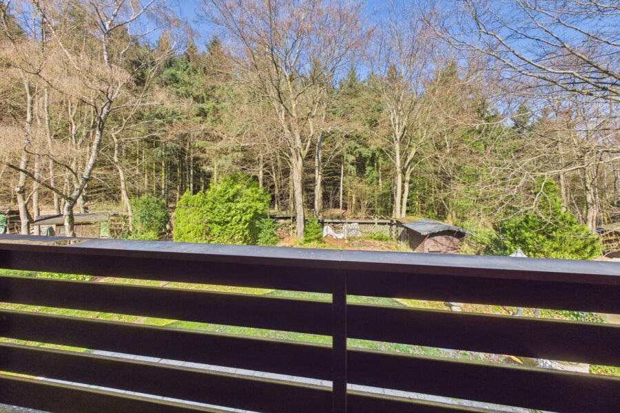 Das Haus steht direkt am Wald.