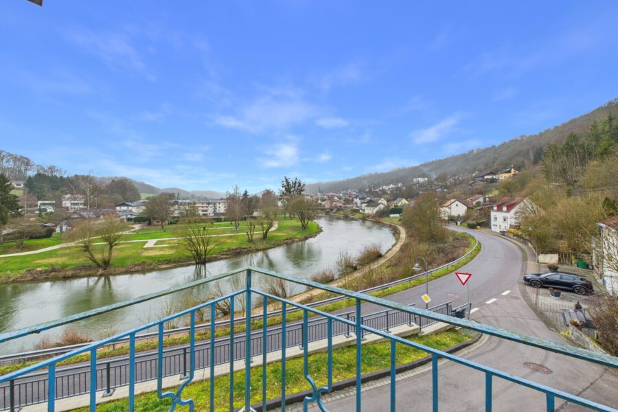 Man blickt über den Fluss Sauer bis nach Luxemburg.