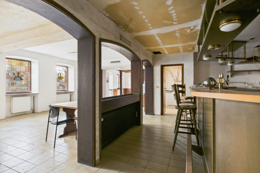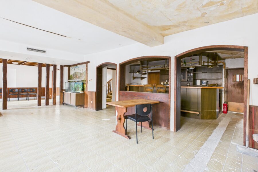 Was heute noch als Küchenanbau auf eine Modernisierung wartet, könnte morgen schon eine bungalowähnliche Loftwohnung werden. Was an Ausschankräumen in der Vergangenheit gut war, kann morgen für eine Familie ein Wohnareal mit Terrasse und Garten werden.
