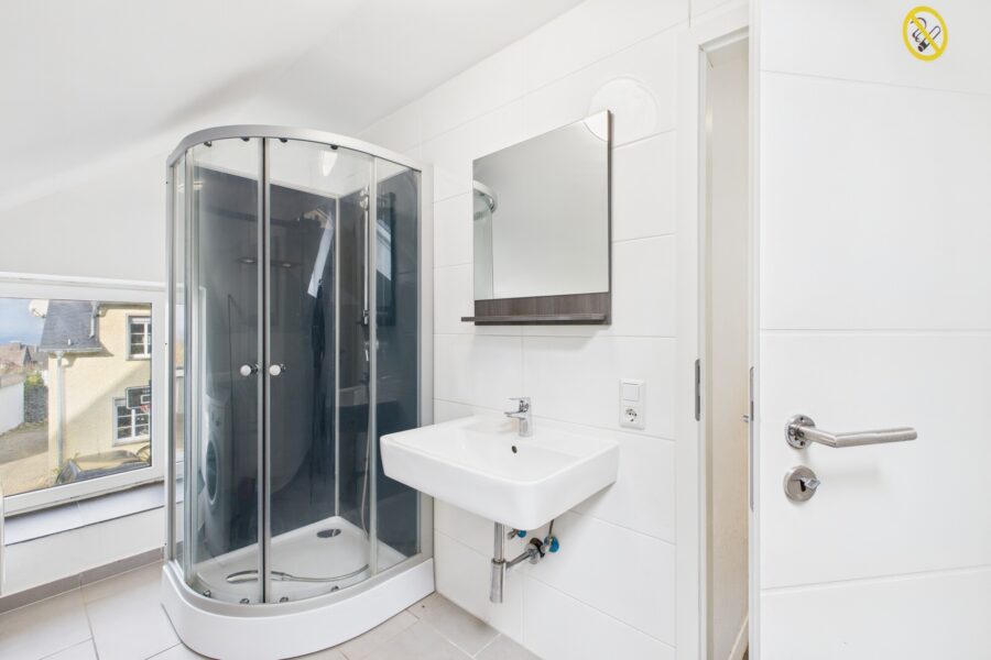 Wohnung 2 hat ein Bad im Obergeschoss.