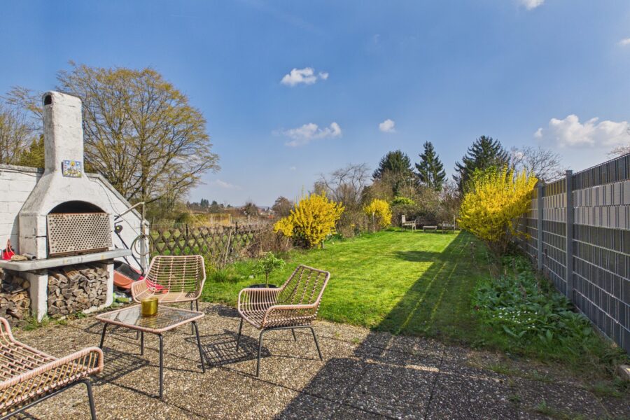 Der Garten gibt mit seiner Lage in Richtung Osten bereits an, dass auch an heißen Tagen das abendliche Grillen glücklicherweise im Hausschatten stattfinden kann. Und für Sonnenhungrige ist gesorgt: Am Ende des Gartens hört der Hausschatten so auf, dass man dort den ganzen Tag Sonne genießen kann.