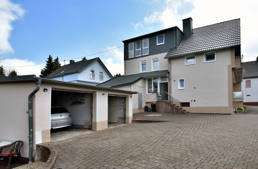Man fährt über eine gemeinsame Einfahrt zur Garage.