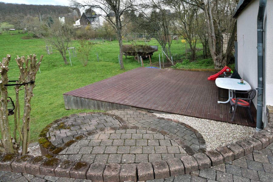 Rechts vor dem Haus ist ein kleiner Platz für ein Motorrad.