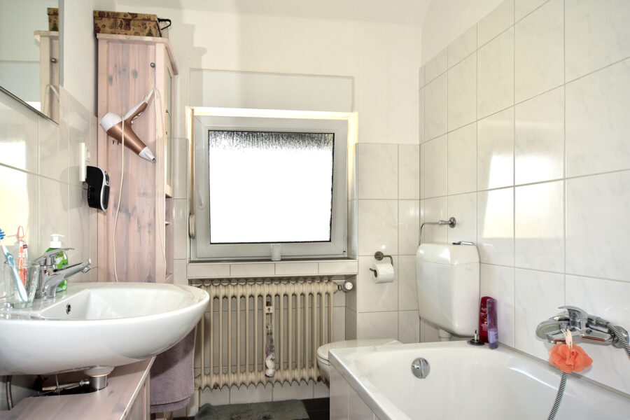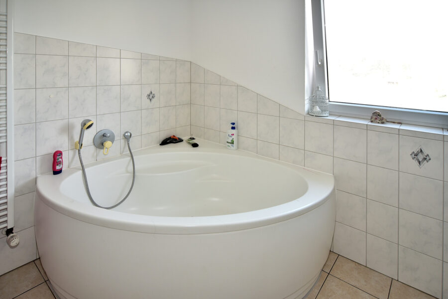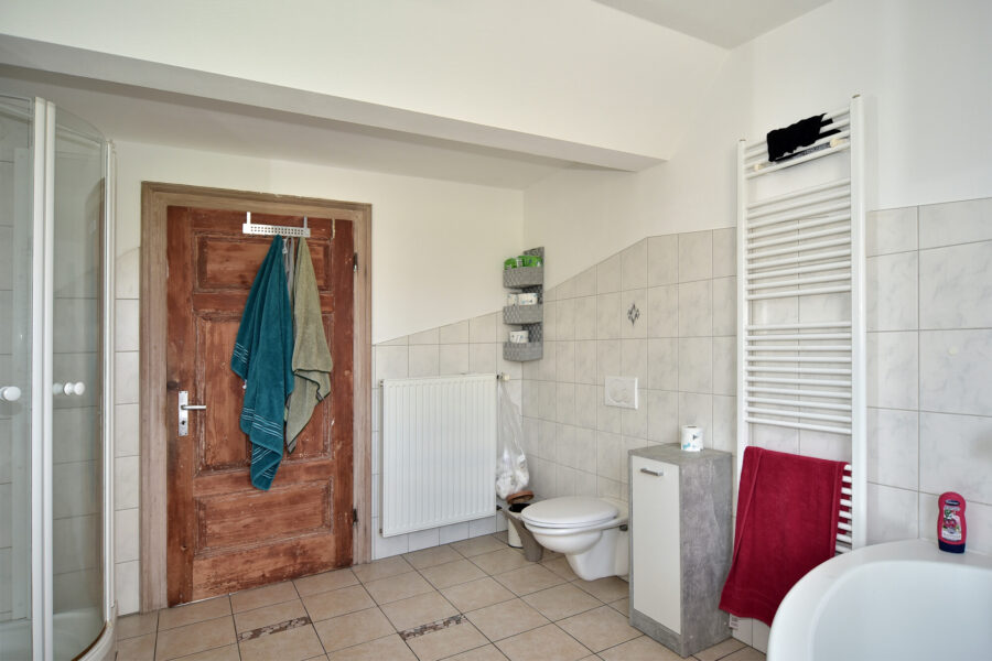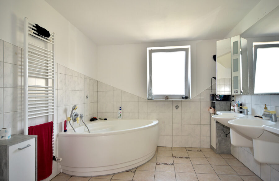 Noch eine Etage höher ist ein großes Bade·zimmer.
