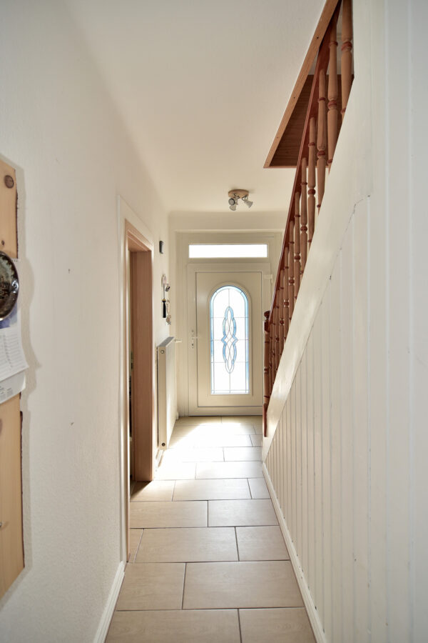 Ein Doppel·haus in Mackenrodt ist zu verkaufen. Das Haus hat 3 Garagen. – TEXT IN LEICHTER SPRACHE