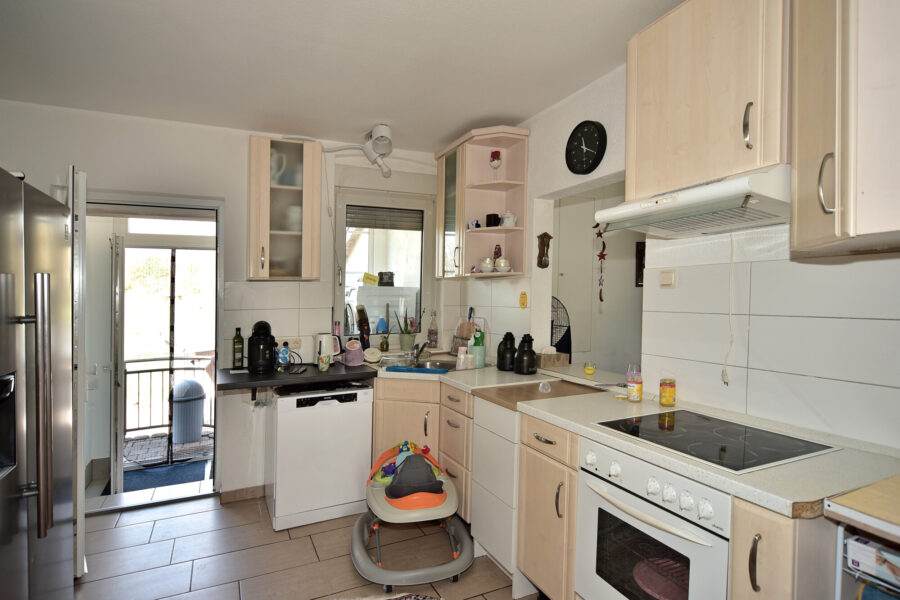 Die Küche ist mit dem Ess·zimmer und dem Wohn·zimmer verbunden.
