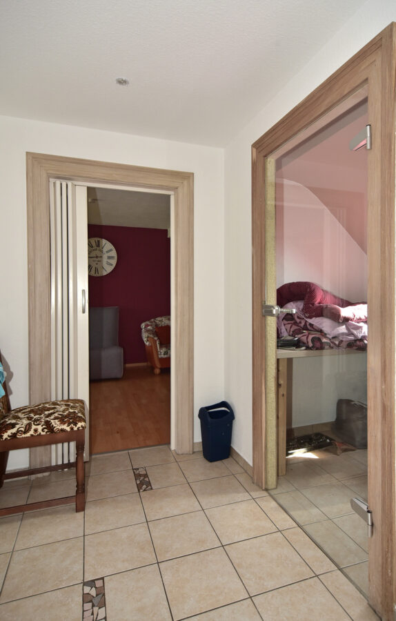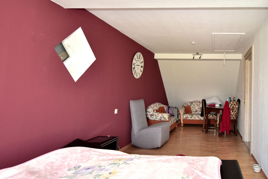 Dieses große Zimmer ist in 2 Bereiche geteilt.